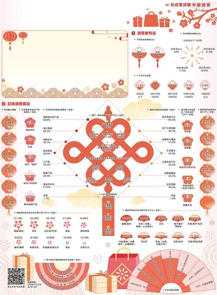 消费逻辑的变化,正在重构年味。当年轻消费者逐渐成为年货置办“主理人”,传统习俗不断焕发新活力,呈现出对个性化、体验感和情感共鸣的更高需求。在这个辞旧迎新的节点,人们购买的不是商品,而是一份心意、一种期待和对“认真过年”的坚持。其中蕴含的是最鲜活的民生注脚。无论时代如何变迁,这份对生活的热爱和向往,永远是春节最动人的底色。(董菲)
